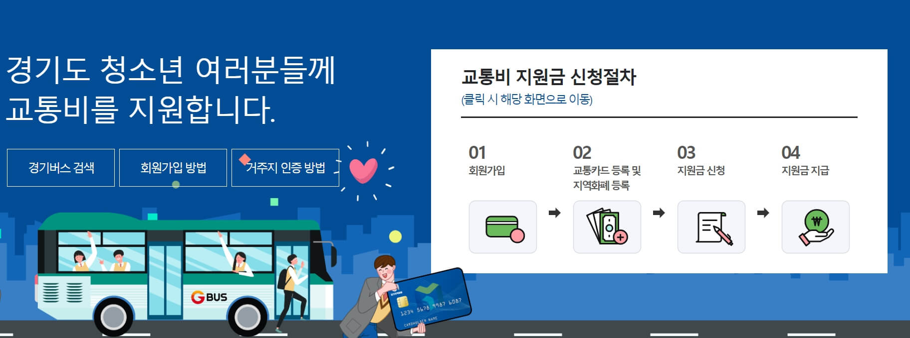 경기도 청소년 교통비 지원 대상 확인 및 신청 바로하기