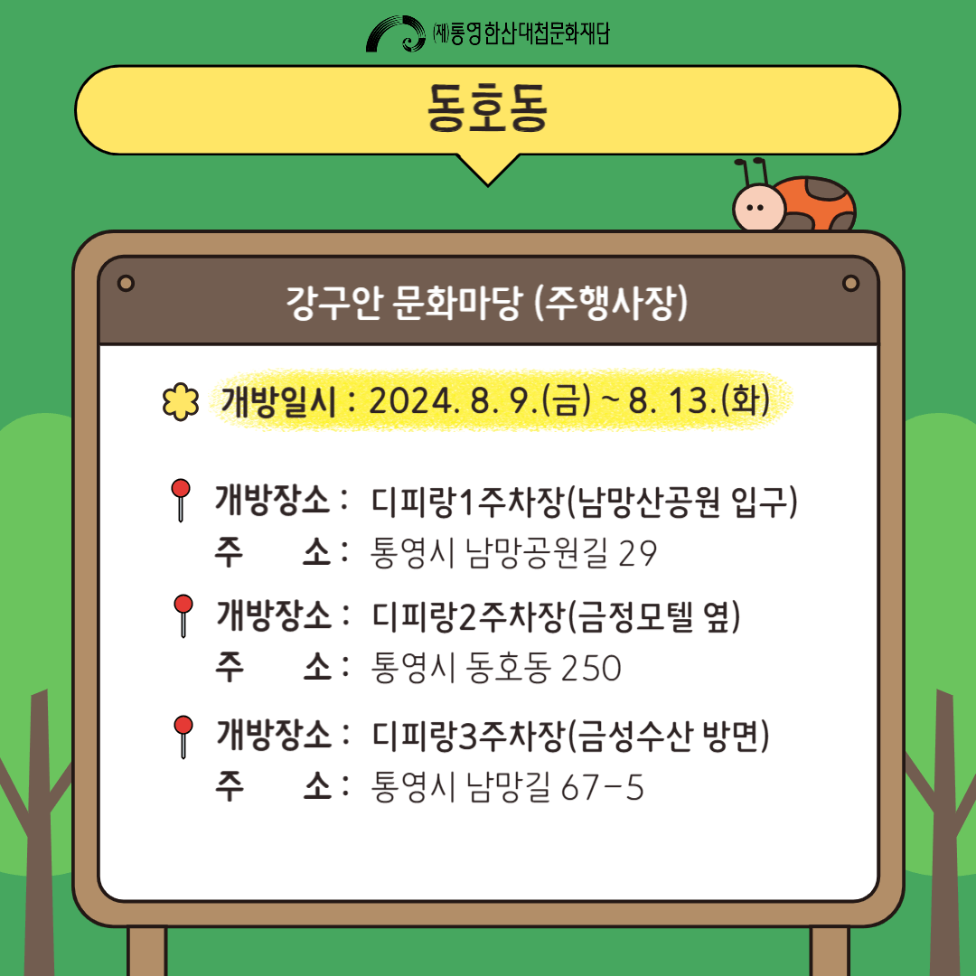 행사 일정 : 2024년 8월 9일(금) ~ 8월 14일(수) 총 6일간 통영시 일원에서 진행합니다.