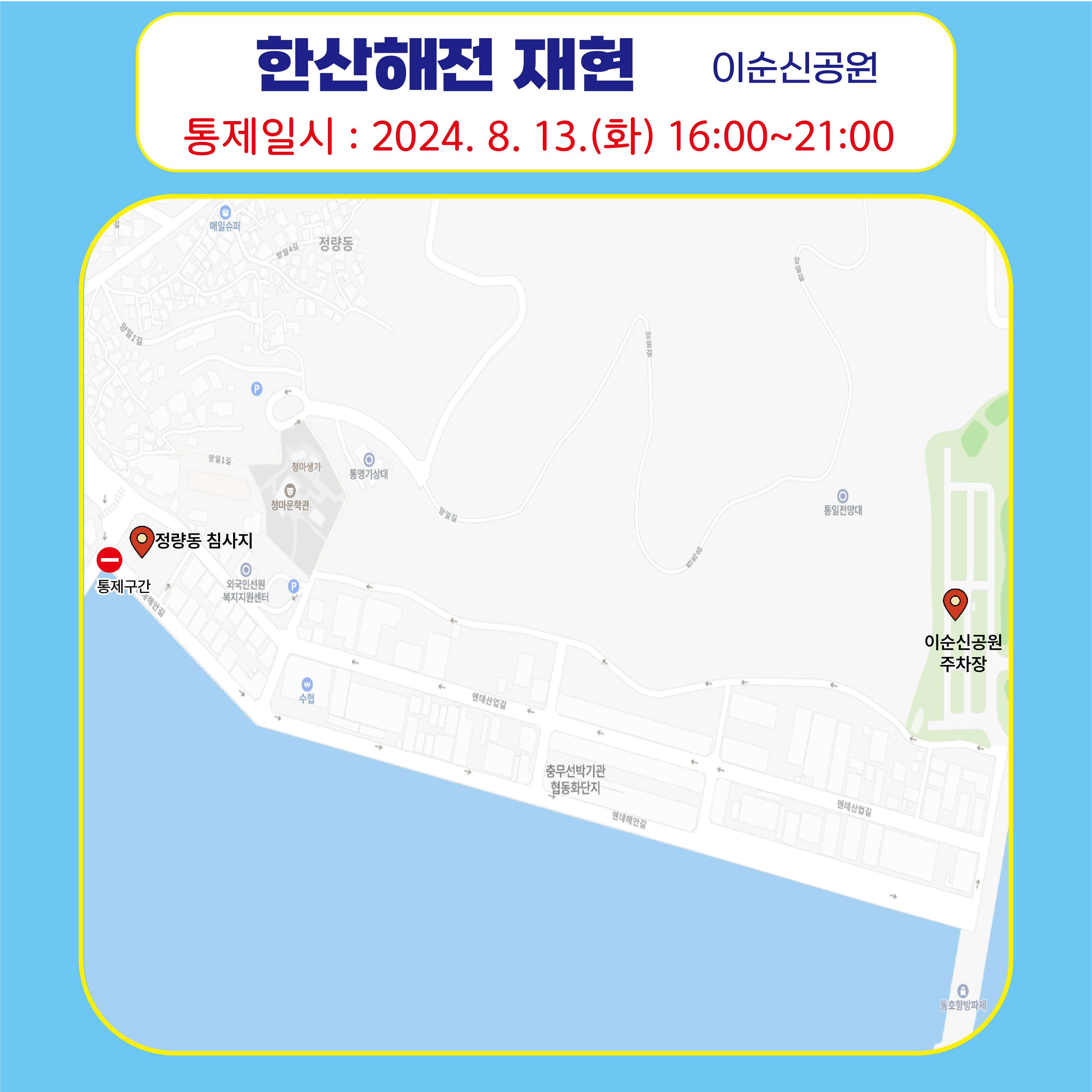 통제구간 : 정량동침사지↔이순신공원 주차장