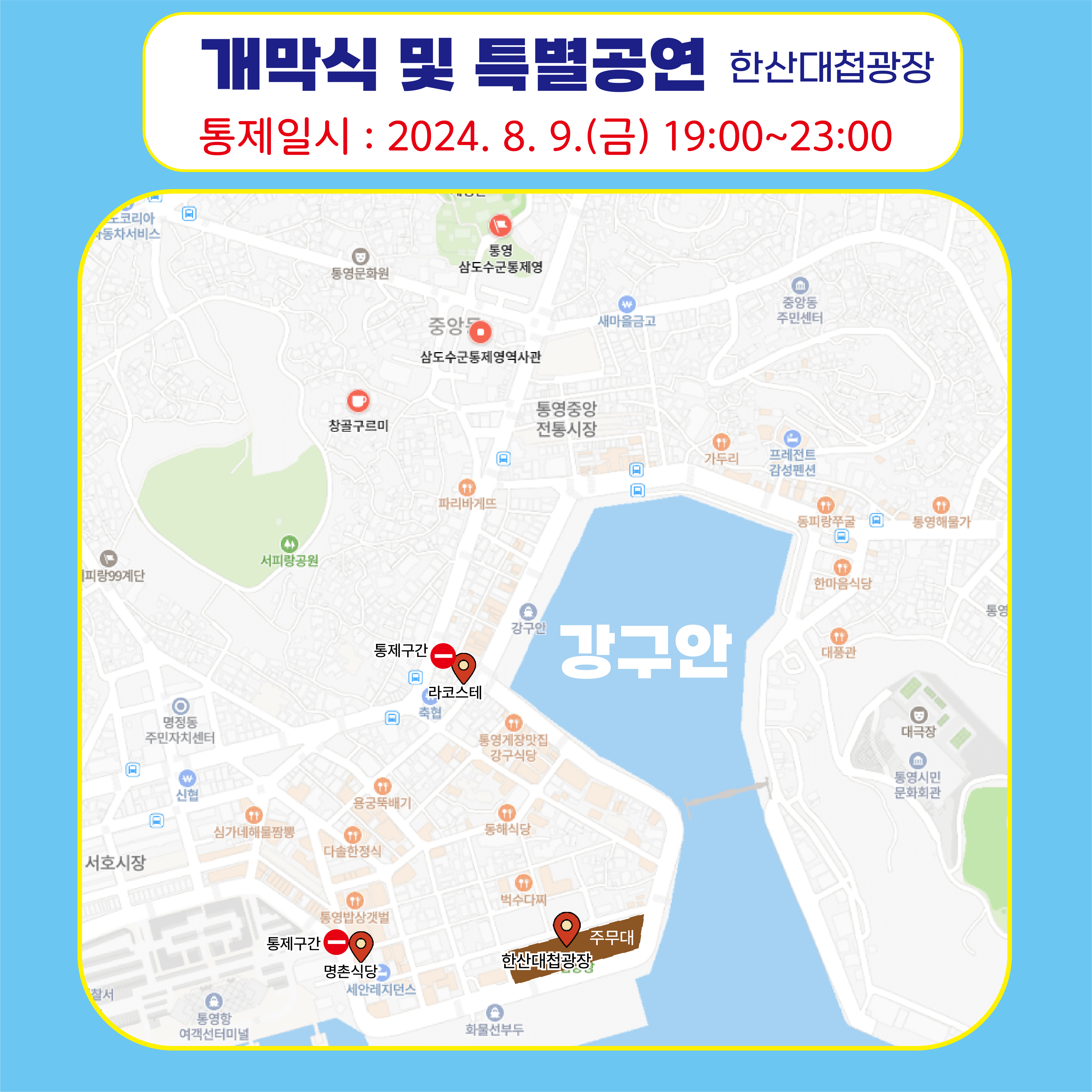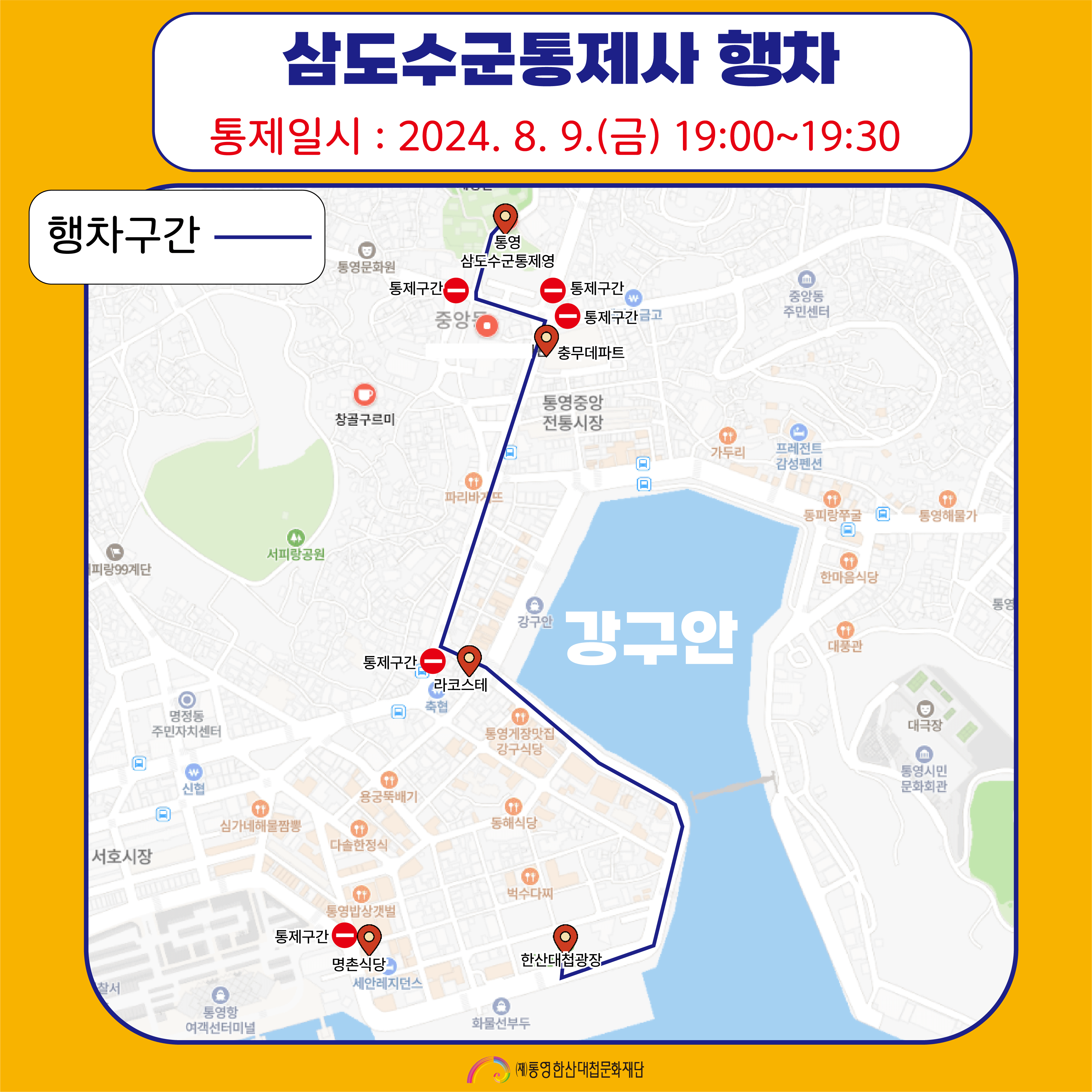 통제구간 : 통제영↔충무데파트↔라코스테↔한산대첩광장