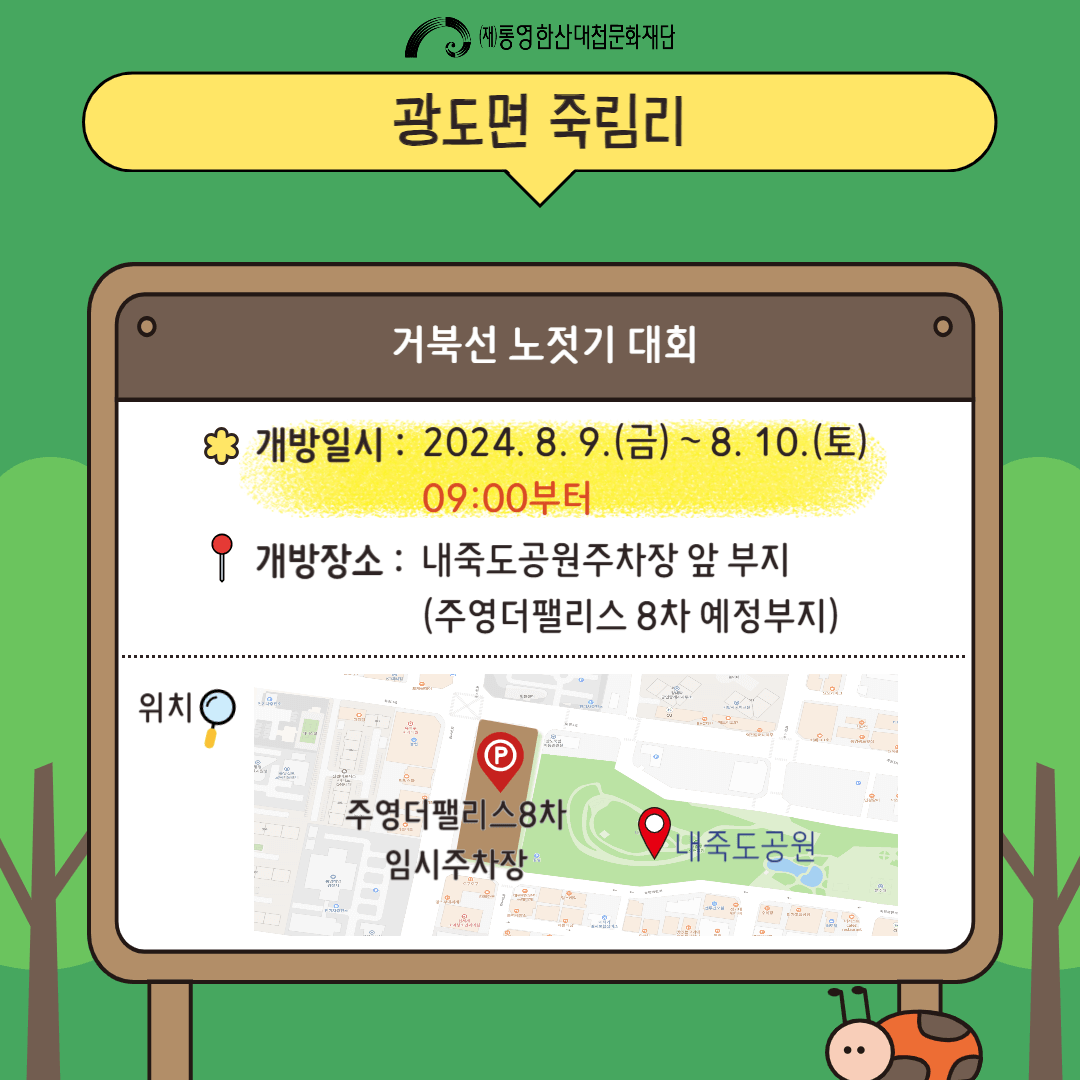 행사 일정 : 2024년 8월 9일(금) ~ 8월 14일(수) 총 6일간 통영시 일원에서 진행합니다.
