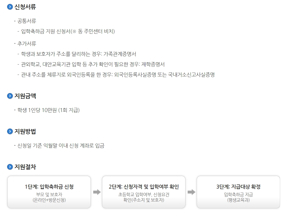 초등학교 입학 지원금 축하금 신청방법