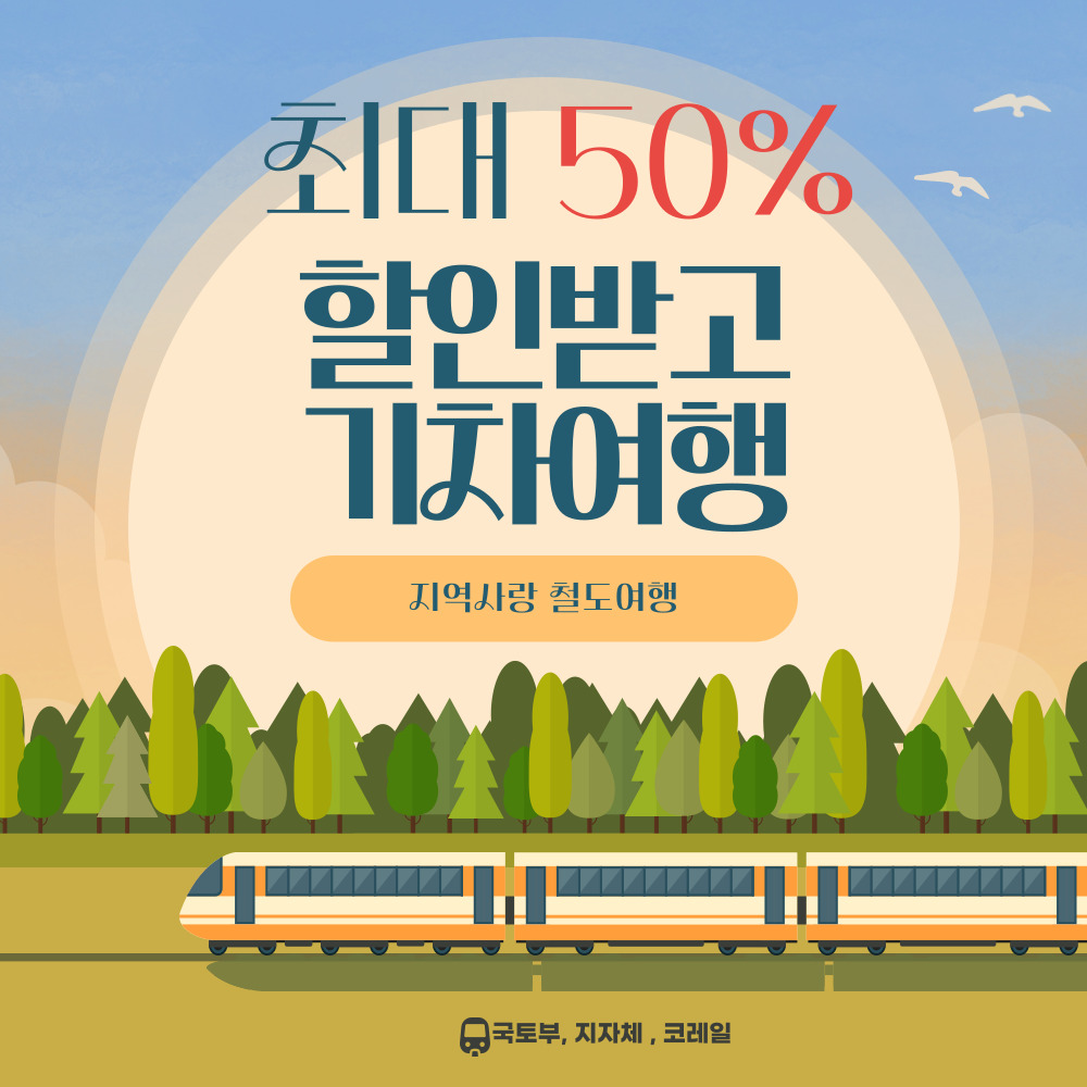 오는 8월 1일부터 시행되는 ' 다시 잇는 대한민국 , 지역사랑 철도여행'에 대해 알고 계신가요? 국토교통부 및 각 지자체 그리고 코레일과 협업하여 인구감소로 어려워진 지방지역을 여행할 때 할인을 받아볼 수 있는 제도입니다. 아직 여름 여행 계획을 세우지 않으셨다면 이번 기회를 잘 이용해 보는 것도 좋을 것 같습니다.
